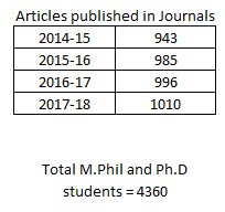 Per student, number of articles published in a year is 0.22. Not even a quarter of students publish even ONE article in a journal in an ENTIRE year! That is the great research work being done. But hey, no published works is no barrier to being invited to “international seminars and conferences”.