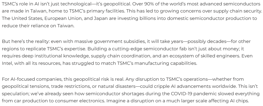 In the age of AI, Taiwan isn’t just producing chips—it’s producing the hardware that makes AI itself possible. That meta-role makes Taiwan the nerve center of the global AI economy.