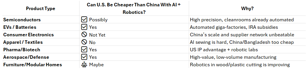 Now, if the United States is serious about decoupling from China and making reshored manufacturing a reality, then robotics and AI aren’t optional—they’re essential.
