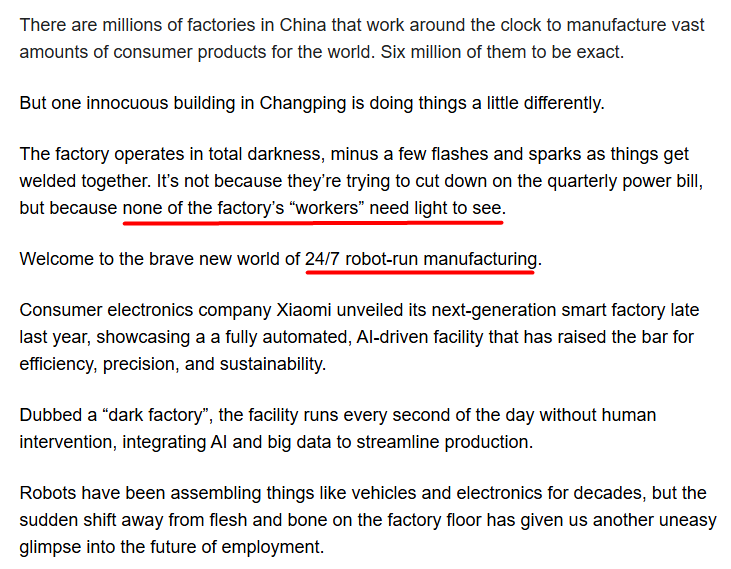 What China is showing with its 'dark factories' may actually be bringing its own downfall in the coming months.