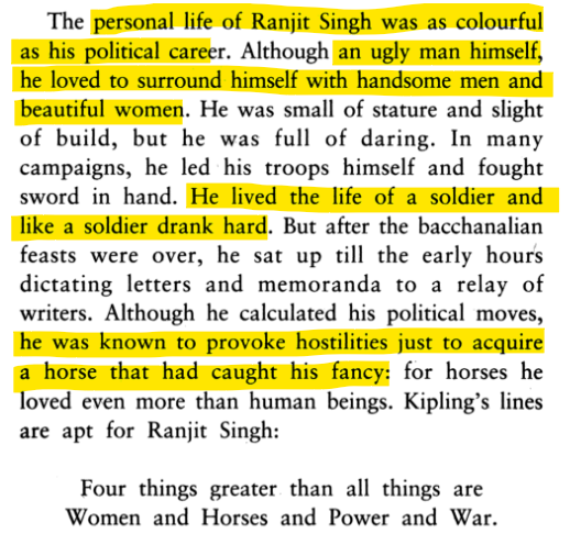 Khushwant Singh described the Maharaja of Punjab in his book "Ranjit Singh" this way.