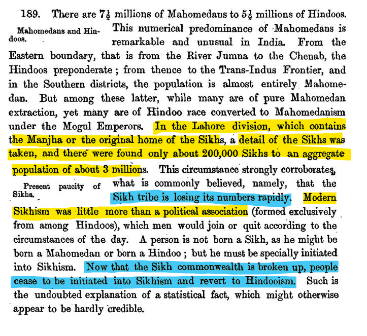 Looking at the language and the overall explanations, one can sense not just the reporting of the numbers but almost a concerted attempt to dissolve Sikhism by the British.