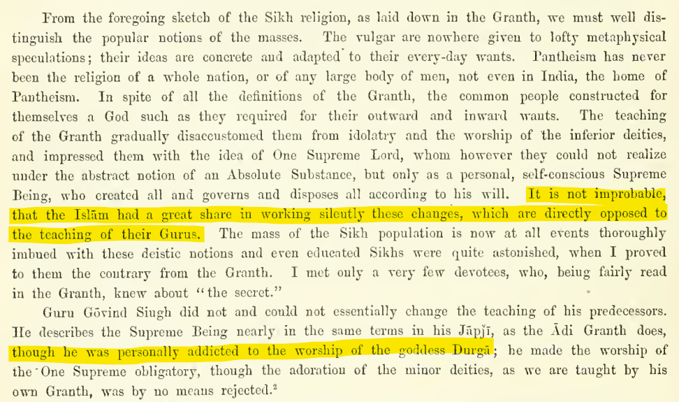 Per Trumpp, this could have been the work of the Islamists working to carefully put in those ideas within the Sikh thought.
