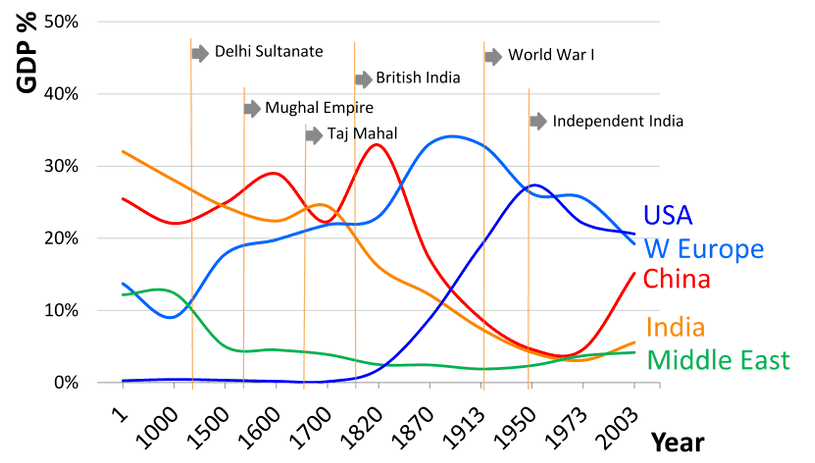 In the chart above, one can see how the UK’s GDP rose and how India’ GDP fell at the same time.