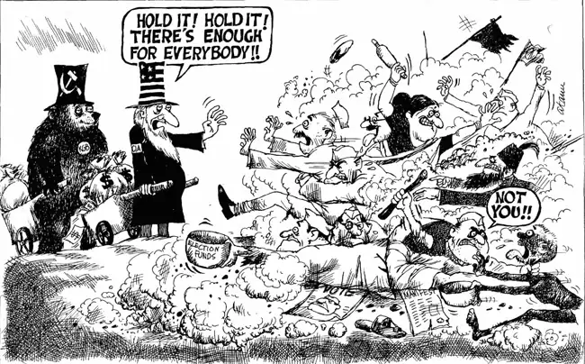 Pakistan's espionage, confined largely to security and defence. is alarmingly successful. The country's political arena on the other hand, has been infiltrated, by the Soviets, the Americans, and to a lesser extent, by the Chinese. Political sources have confirmed that considerable amounts in dollars and roubles have cascaded into the coffers of the three leading electoral contenders-the Congress (I), the Janata Party and the Lok Dal. While it is not possible to pin down the exact amount, identifying the benefactors and the recipients poses less of a problem. (Source: "Foreign funds to play vital role in Lok Sabha polls" / India Today)