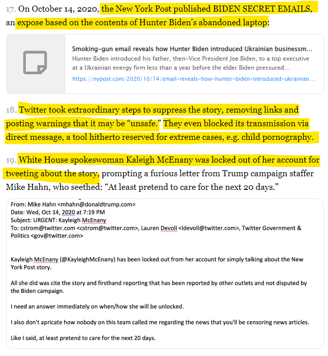 The most shocking action was suspending Kaleigh McEnany, the White House Spokeswoman because she simply shared the Hunter Biden laptop story published by New York Post.
