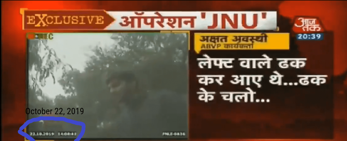 The central character in the video is a guy named Akshat Awasthi. The video and “Sting” movie credits introduce him as a “ABVP supporter”. In a brilliant piece by Nupur Sharma, Opindia questions this theory saying that news reports clearly show that Awasthi was in a JNUSU/Congress/Left rally and not in the ABVP rally!