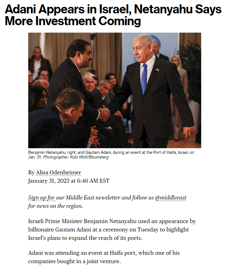 First was the Israeli Prime Minister, Netanyahu. A close friend of Narendra Modi and India's close ally. He backed Adani profusely on the occasion of an event marking the Adani takeover of the Haifa port.