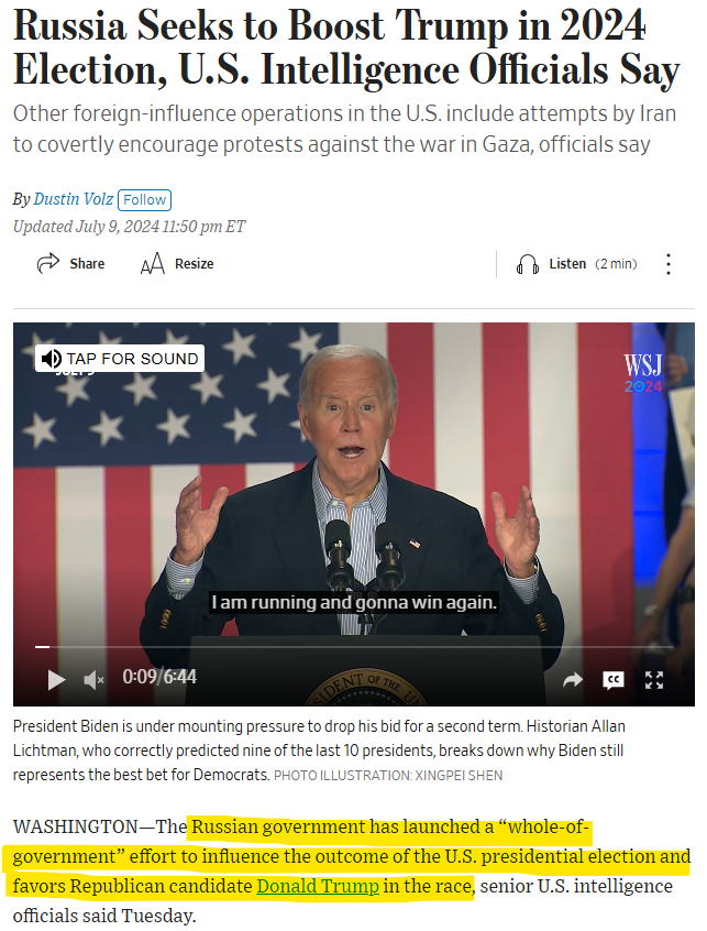 The childish Russian bogie that the Democrats+Media+Intelligence kept playing in 2020 is being whipped up all over again for 2024 as well!