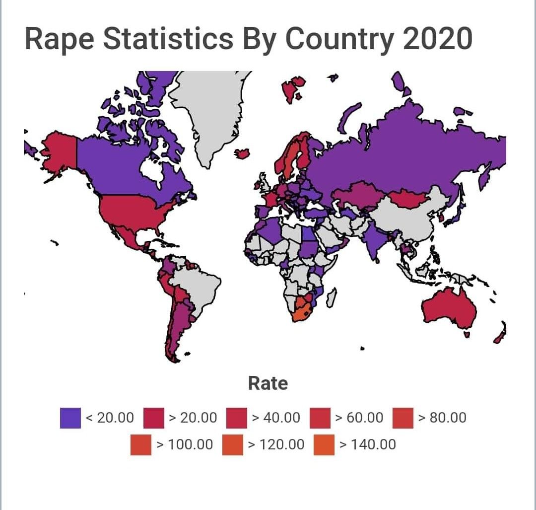 Here is a quick visual of the rape statistics by country. (Source)