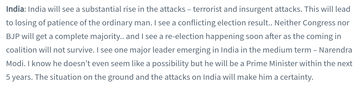 On Drishtikone, we share Annual Predictions for the subsequent year, every December. Not based on any astrological or clairvoyant ability but a simple understanding of socio-economic scenarios and their ramifications. We do it for India, the US, and Pakistan. (Source) They are not meant to show our clairvoyant or magical powers but a way to test our own understanding of things that happen in three countries we follow closely.
