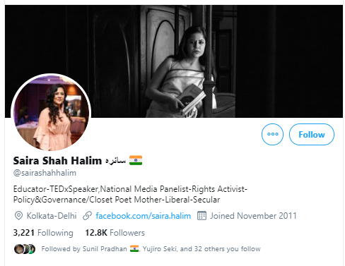 She, Saira Shah Halim, is an educator. TED Speaker. National Media Panelist. And, yes, of course, a Rights Activist. And Liberal-Secular to boot!