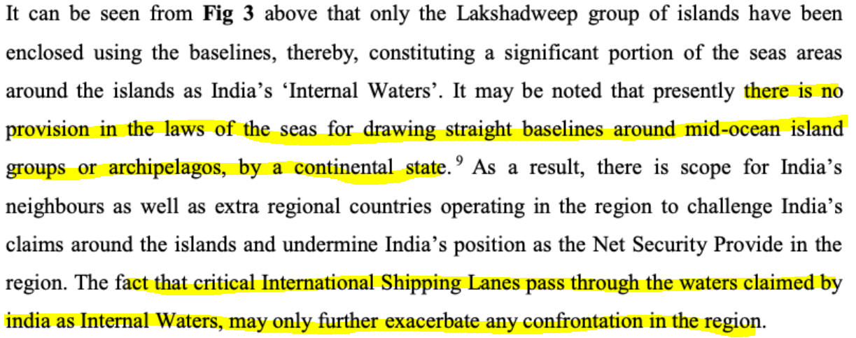 Captain Abhishek Kumar in his Master's thesis under Rear Admiral Sudarshan Shrikhande at the Naval War College has also shared earlier that Indian claims are inconsistent with UNCLOS. (Source)