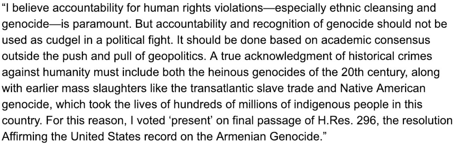 She obviously sides with the Islamic genocidal forces like the Turkish genocide of Armenians. To understand the complete history of the Turkish-Armenian conflict - please read our newsletter issue # 138.