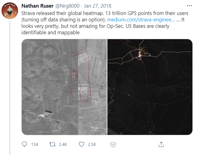 An open-source researcher looked at it and charted out the US military bases around the world based on how the soldiers would track their runs!