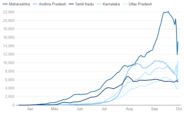 The top five worst states have had the following chart. Maharashtra is the worst culprit.
