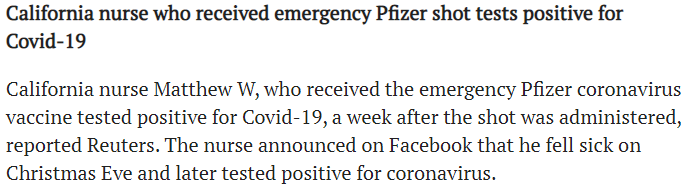 Here is an interesting piece of news. A nurse in California took the Pfizer COVID vaccine and then fell sick and tested positive for COVID-19 anyhow. (Source)