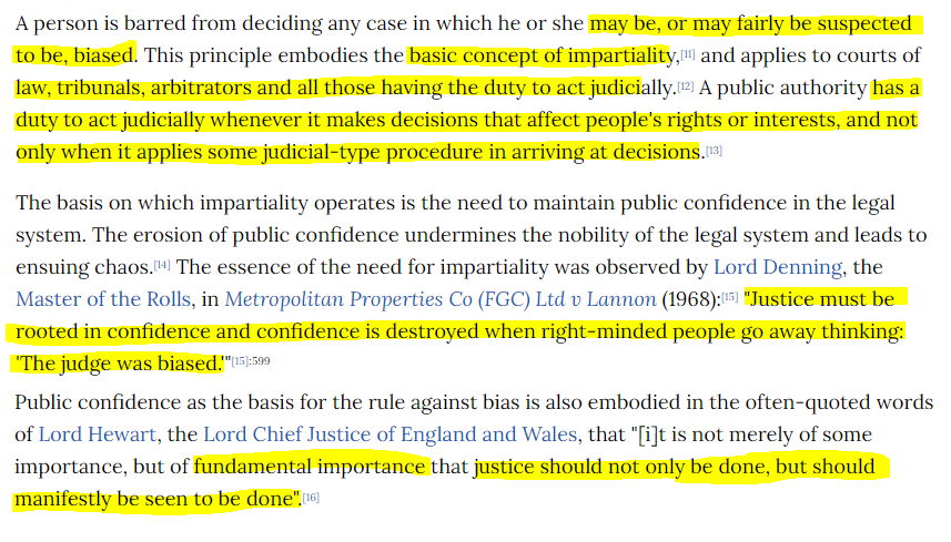 Was the principle that embodied the basis for the rule against bias for the judiciary to function with credibility.
