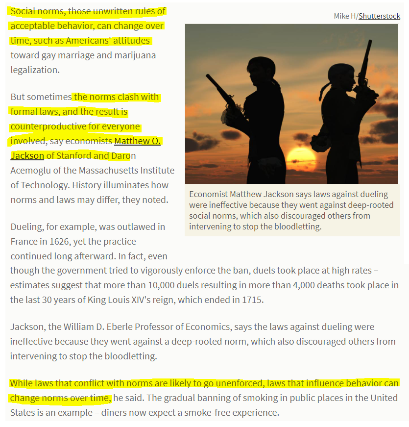 A detailed study by Stanford and MIT economists show that the way laws can bring about change in the society is NOT by hitting at the social norms but impacting individual behavior.