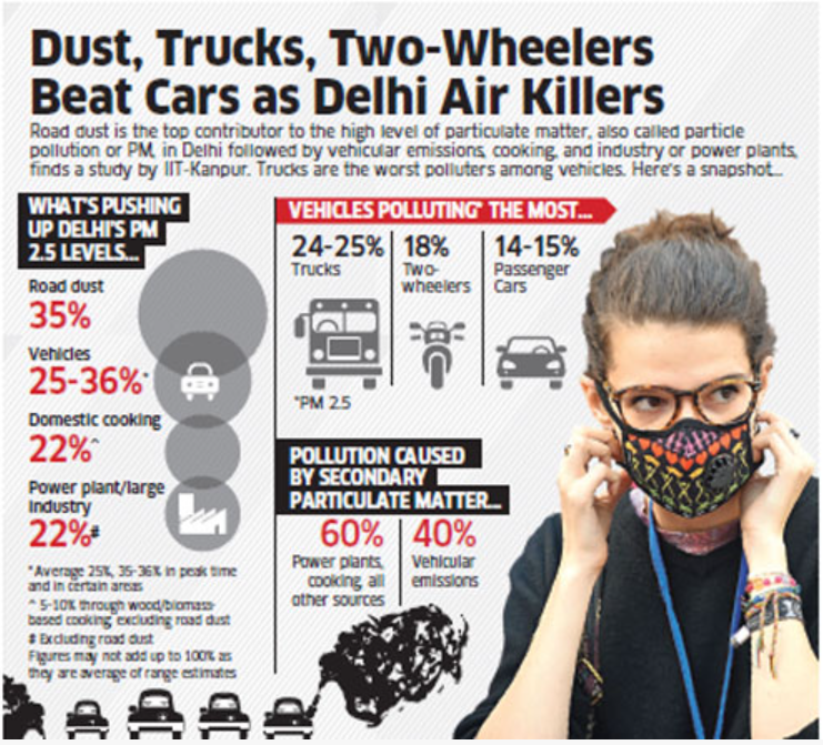 The biggest culprit of pollution in India is road dust and vehicles, specifically Trucks.