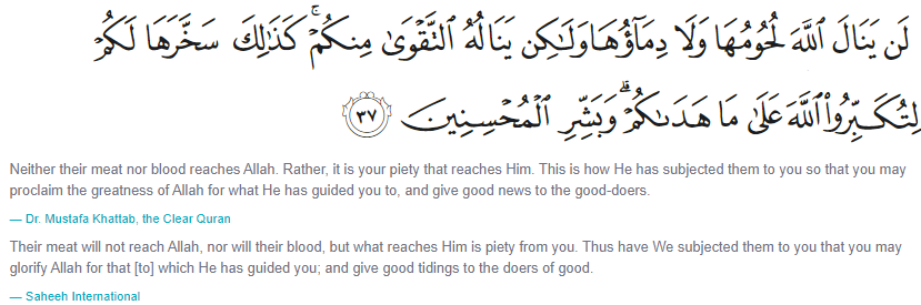 Using the theological basis for the slaughter of animals, one can refer to Quran in how it treats the killing of an animal versus the piety of a person and what really matters in the religious sense.