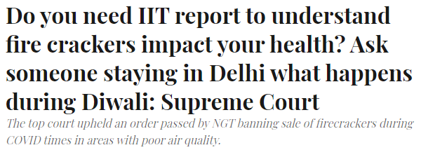 To this, the apex court retorted “Do you need IIT to understand that firecrackers impact your health? Ask someone staying in Delhi what happens during Diwali.”