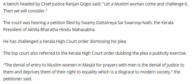 However, only when a Muslim woman filed litigation on women’s entry into the mosque did the Supreme Court look up.