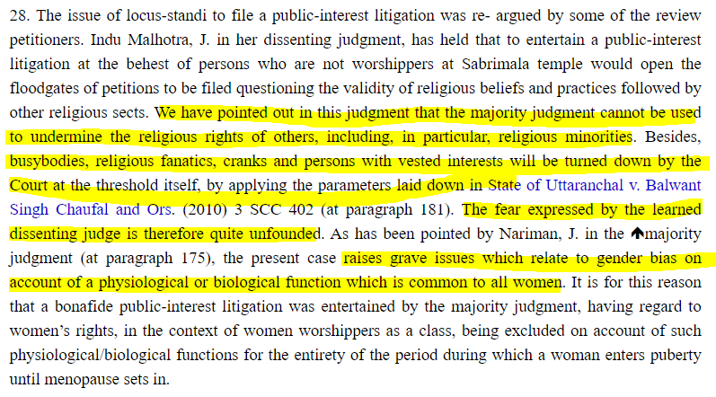 When Justice Indu Malhotra dissented, she said the same thing. That these women did not represent the worshippers at the temple. Her argument, however, was countered by saying that majority judgment cannot be used to undermine the rights of others.