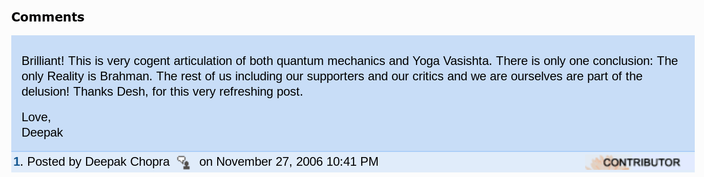 And it received a special comment from none other than Dr. Deepak Chopra.