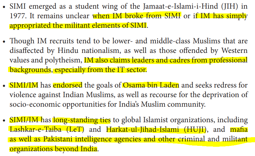 SIMI and IM have links to and affiliations with the Lashkar-e-Taibba and Jaish-e-Mohammad as well as Pakistan’s ISI which trains the Jihadi terrorists.