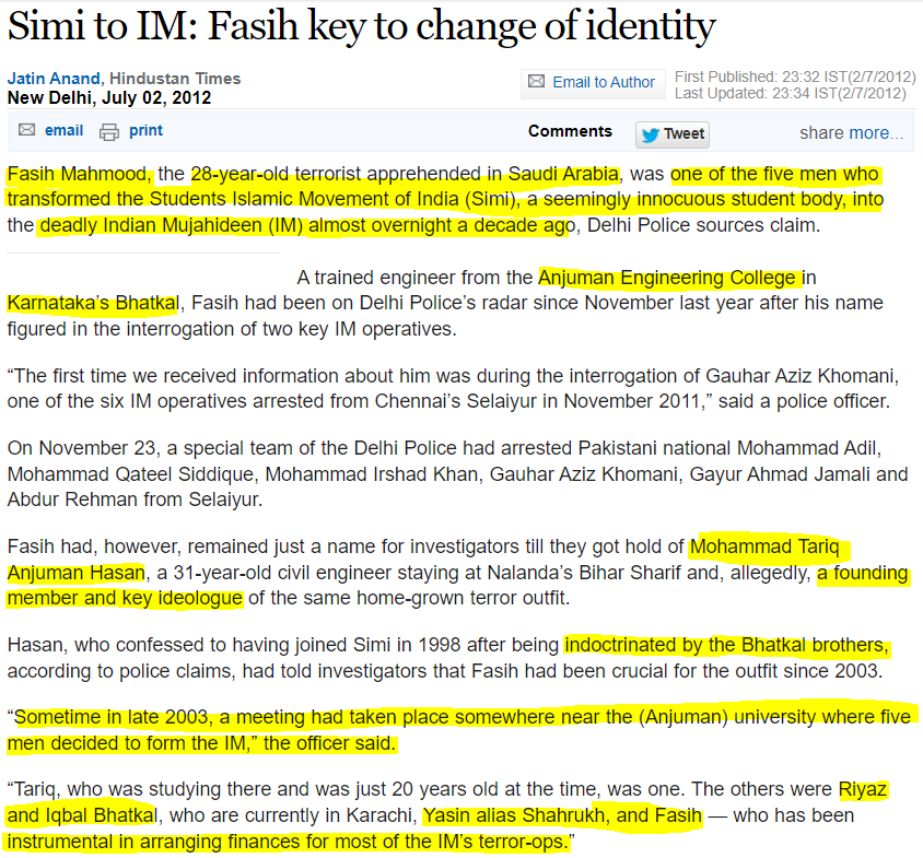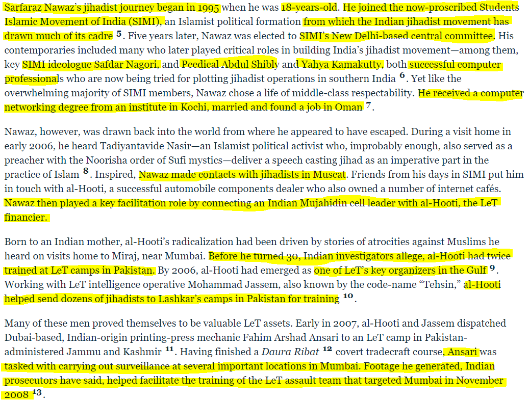 The story of how SIMI/IM links with Lashkar-e-Taibba were solidified is also an interesting story in itself. Here are the details from the “Combating Terrorism Center” at the US Military Academy at West Point.