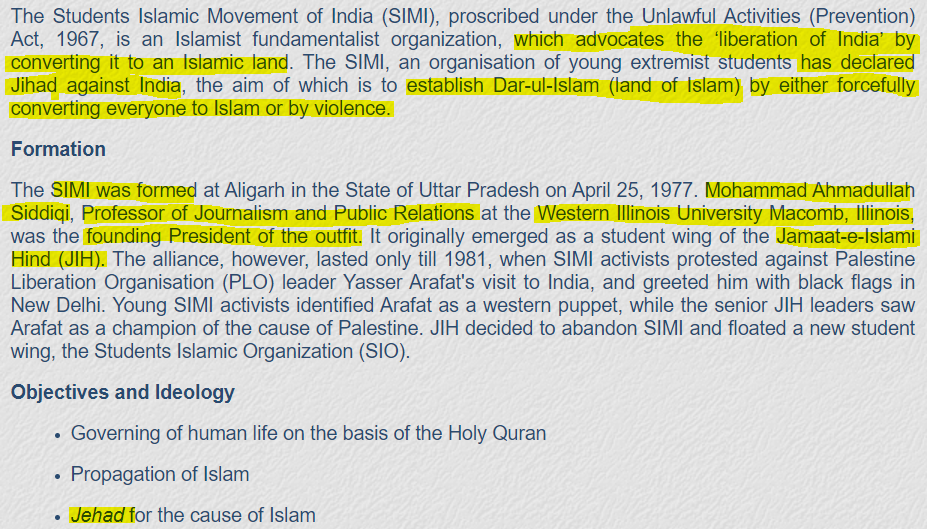 West Point’s Combating Terrorism Center (CTC) says that most of the Indian jihadi terrorism has one main fountainhead. The Students Islamic Movement of India (SIMI).