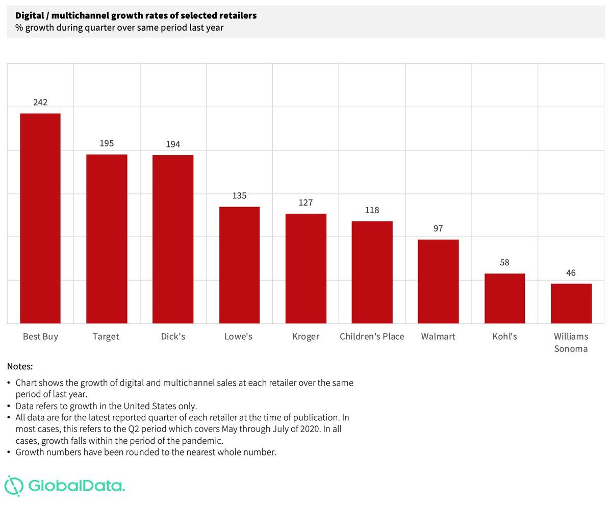- the highest growth rates over the past few months have come from multichannel retailers, not from pure-play online retailers. In the US, many traditional retailers have been very innovative in using their stores to offer services like a curbside pickup.