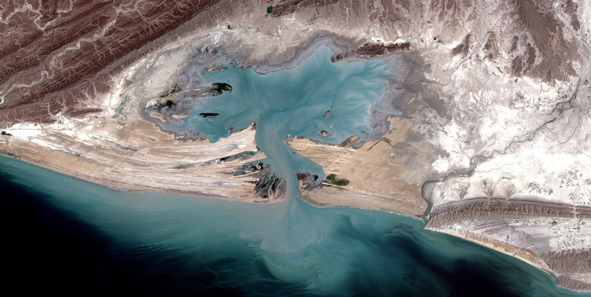 Khor Kalmat is a lagoon located along the Makran coast of Balochistan and home to the Buzi Makola Wildlife Sanctuary bordering the Arabian sea (Source: Sentinelhub)