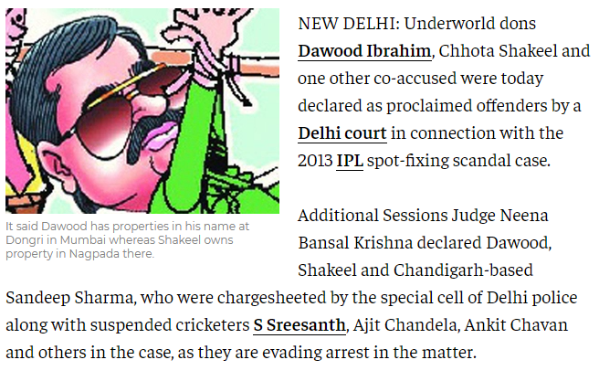 We all know that IPL has been deeply infiltrated by the Dawood gang for a long time. (Source)