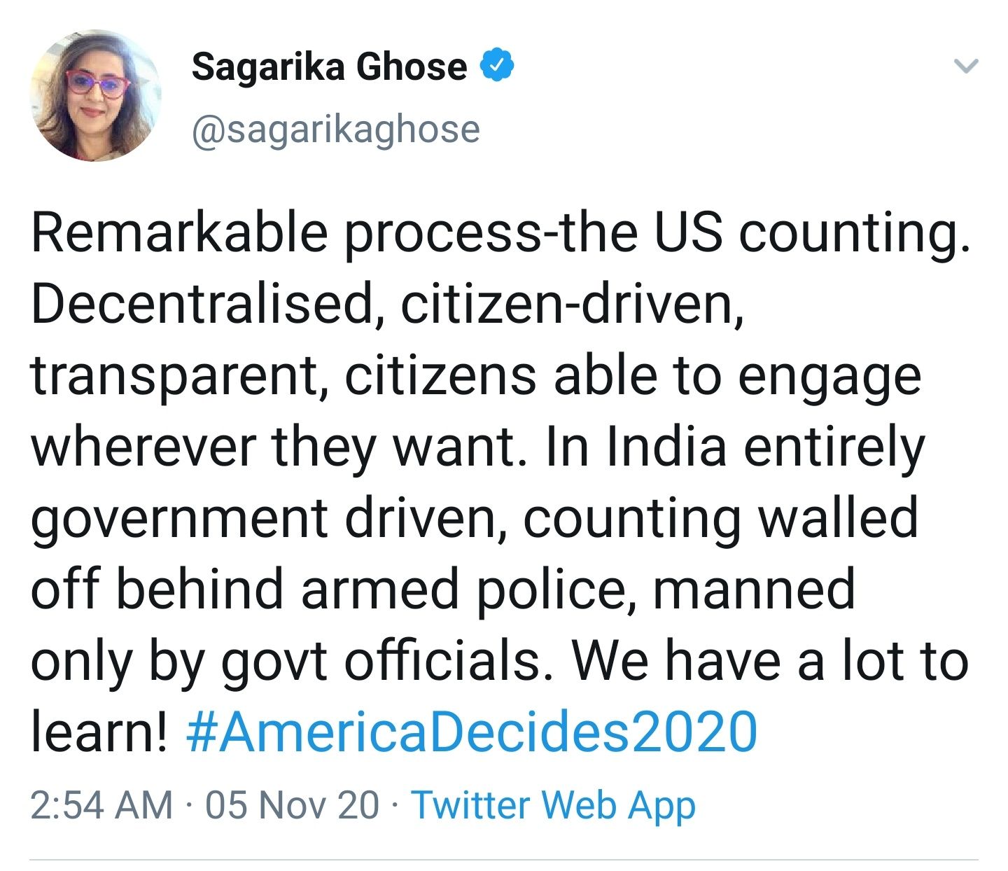 She actually has the nerve to compare the Indian election with over 4 times the size of voters and system with that of the US.