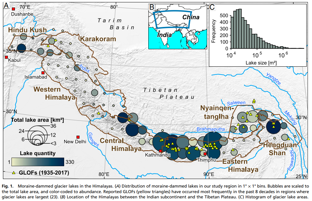 “The dams are getting closer to glacial lakes, making them more vulnerable to GLOFs,” says Wolfgang Schwanghart, a geologist at the University of Potsdam in Germany who is lead author of the analysis published July 8 in Environmental Research Letters. (Source)