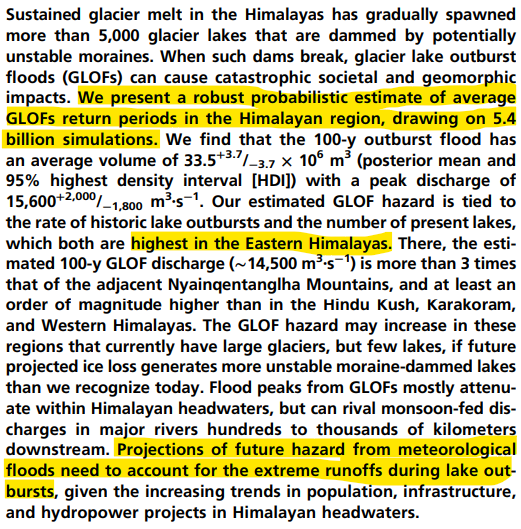 The fact is that the entire Himalayan area between the Central Himalayas and Eastern Himalayas is the most disaster-prone given the prevalence of glacial lakes.