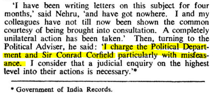 Nehru was furious that day. It is in this meeting that he fanously accused Corfield directly to his face.