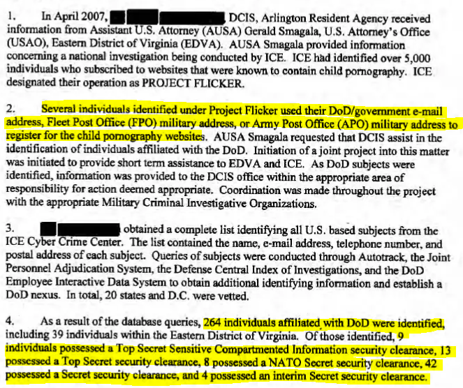 In what is known as Project Operation Flicker, several powerful individuals were charged with pornography.