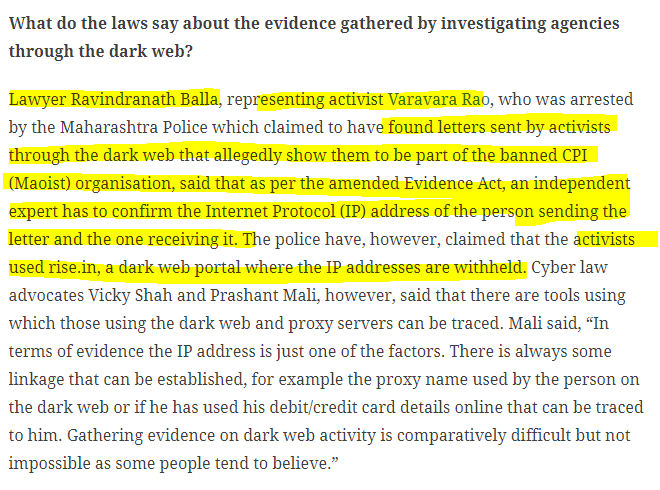 In fact, in the case of Varavara Rao, the Urban Naxal who was involved in naxal terror activities, he and his associates were communicating using Dark Web. Rao’s lawyer used the loophole in Evidence Act just because of the anonymity that Dark Web provides!