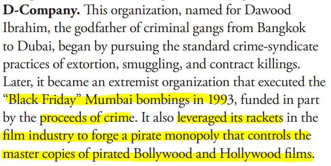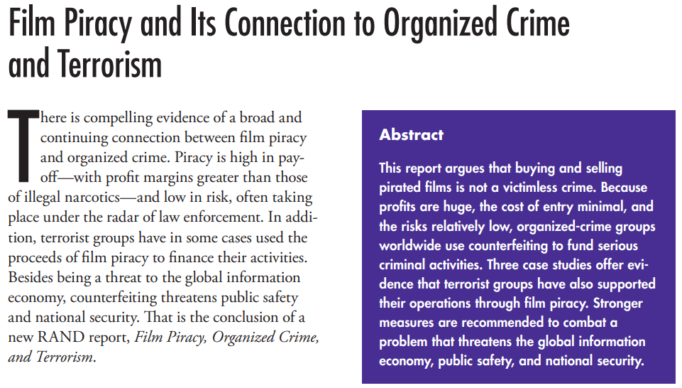 An interesting study by Rand Corporation also shares how narcotics trade, movie piracy business and weapons trafficking are strongly linked.