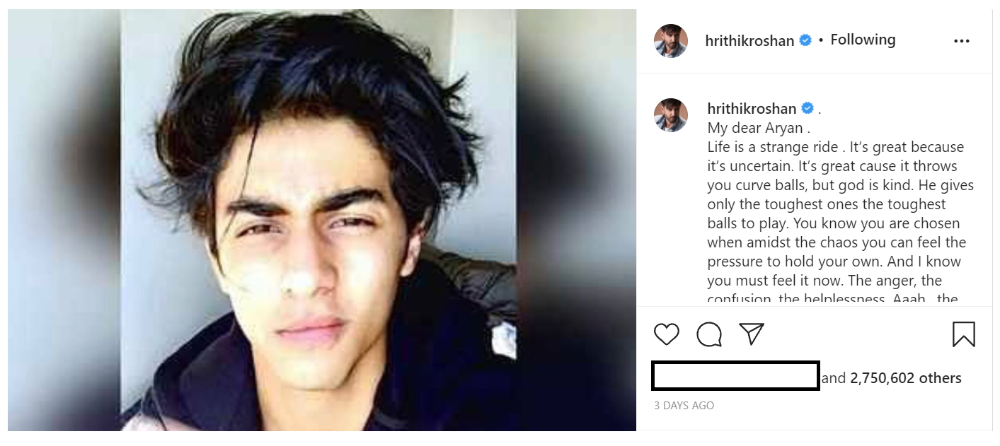 Many celebrities came out in support of Aryan Khan, probably out of ignorance of what his arrest meant in the larger scheme of things or out of camaraderie for their own skin may be involved somewhere. Like for example, Hrithik Roshan penned an open letter to Aryan.
