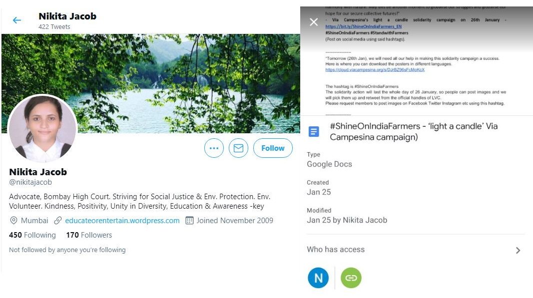 Now, what is interesting is that those who accessed the Google Docs link that Thunberg shared, they found one Nikita Jacob editing it. This lady has since deleted her Twitter account!