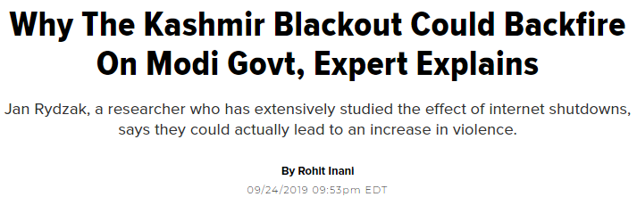 This whole policy structure, which is fundamentally imperialist in nature, is backed by atrocity literature dished out by those whose work is flawed and compromised. For example, this “expert” warned about the whole internet shutdown situation and how it will backfire for India and result in violence. (Source)