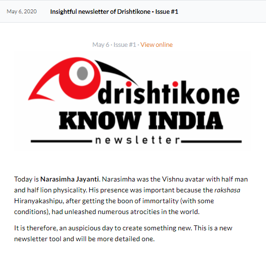 Sometimes one thinks what would have made a working individual take this plunge and hope to keep writing a newsletter daily for a year? Well, one knew that there was a blog at Drishtikone, which had close to 8000 articles on it since 2005. So, if one found no way forward on a day, then archives from that blog could serve as a way to get the content.