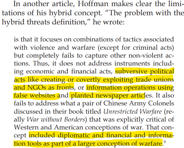 Hoffman has also critiqued this definition because it does not fully account for other actions that are as lethal. Use of NGOs and Information falsification via compliant media.