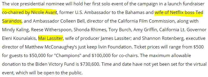 She was not just the fundraiser for Obama but also for Kamala Harris.