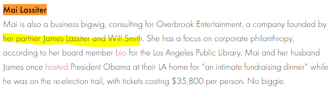 One thing that String did not share in his excellent video is that Mai Lassiter is the wife of James Lassiter, who is a business partner of Will Smith, the actor. Their connections and network are quite extensive.