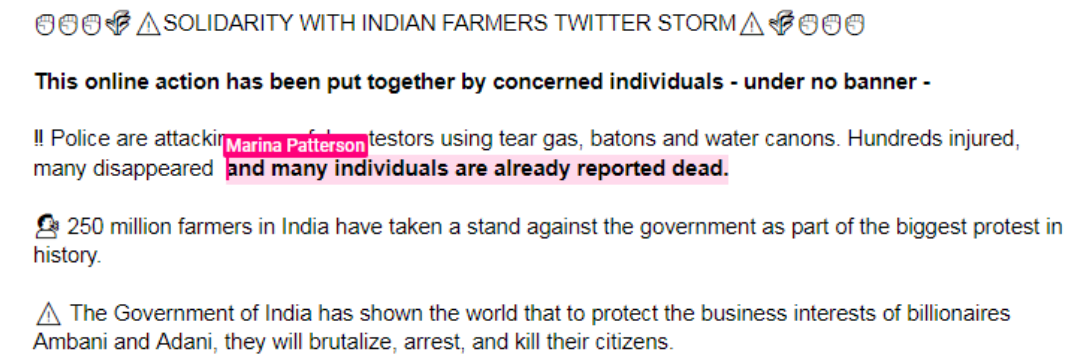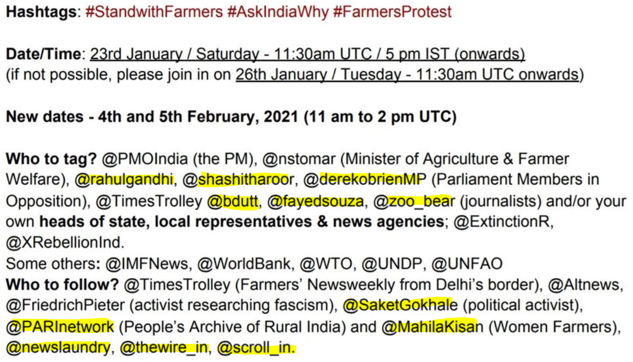 The document also shows the voices that are aligned to the whole propaganda drama and will amplify the tweets. The plan was discussed on January 23rd IST and plans were already in place for January 26th and thereafter.